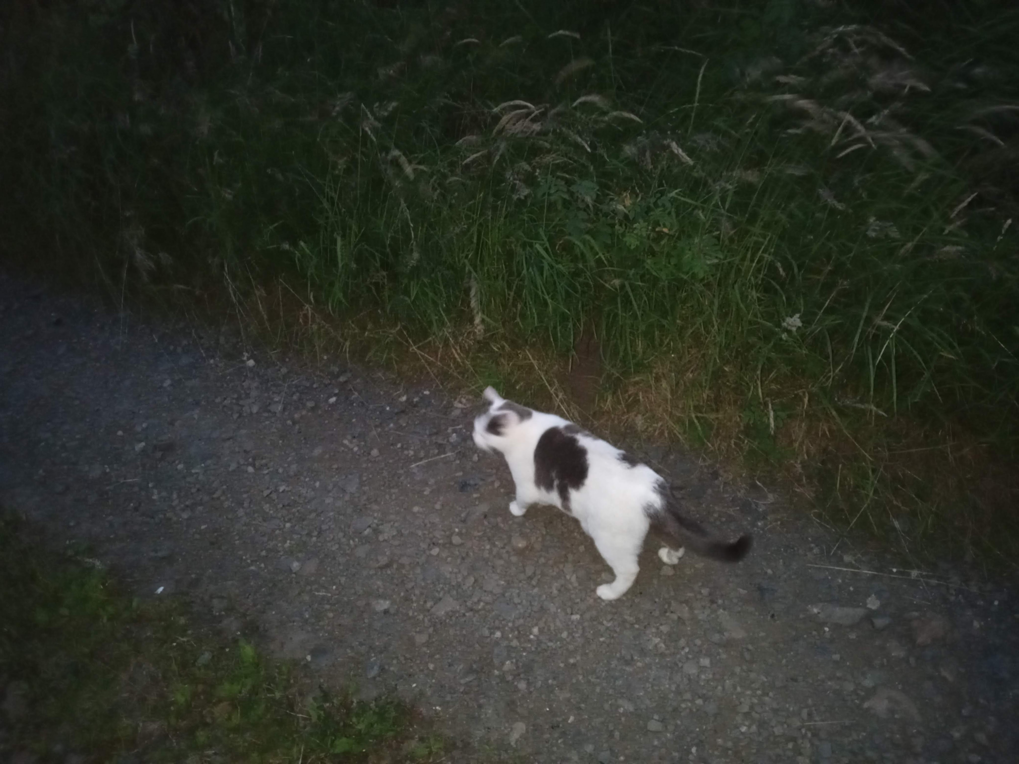But when we got to where she had stopped, there was no sign of the cat. We called and called then concluded that she was probably terrorising the local mouse population at our neighbours. We walked home.