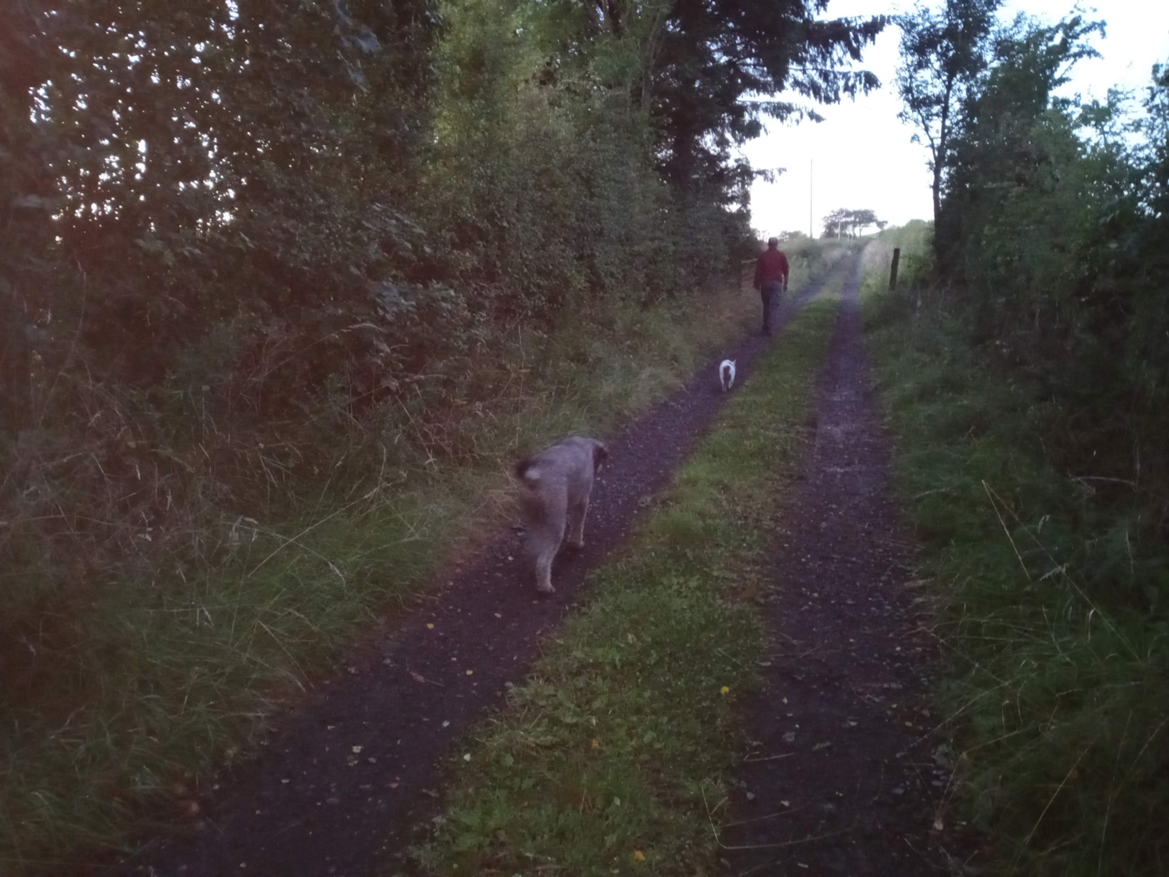 I thought you might like an update on the cats: they seem to be a bit keener on being with us now, so both of them follow us up the track when we take Doofus for his evening walk. Sad people that we are, we have taken to stopping and waiting for them to catch up. Which can mean our walks take much longer as we wait for Tripod. The theme of the baby elephant walk plays in Geordie Smallholder’s head. All together now, dee deedee dee dee dee dee dee deedee.