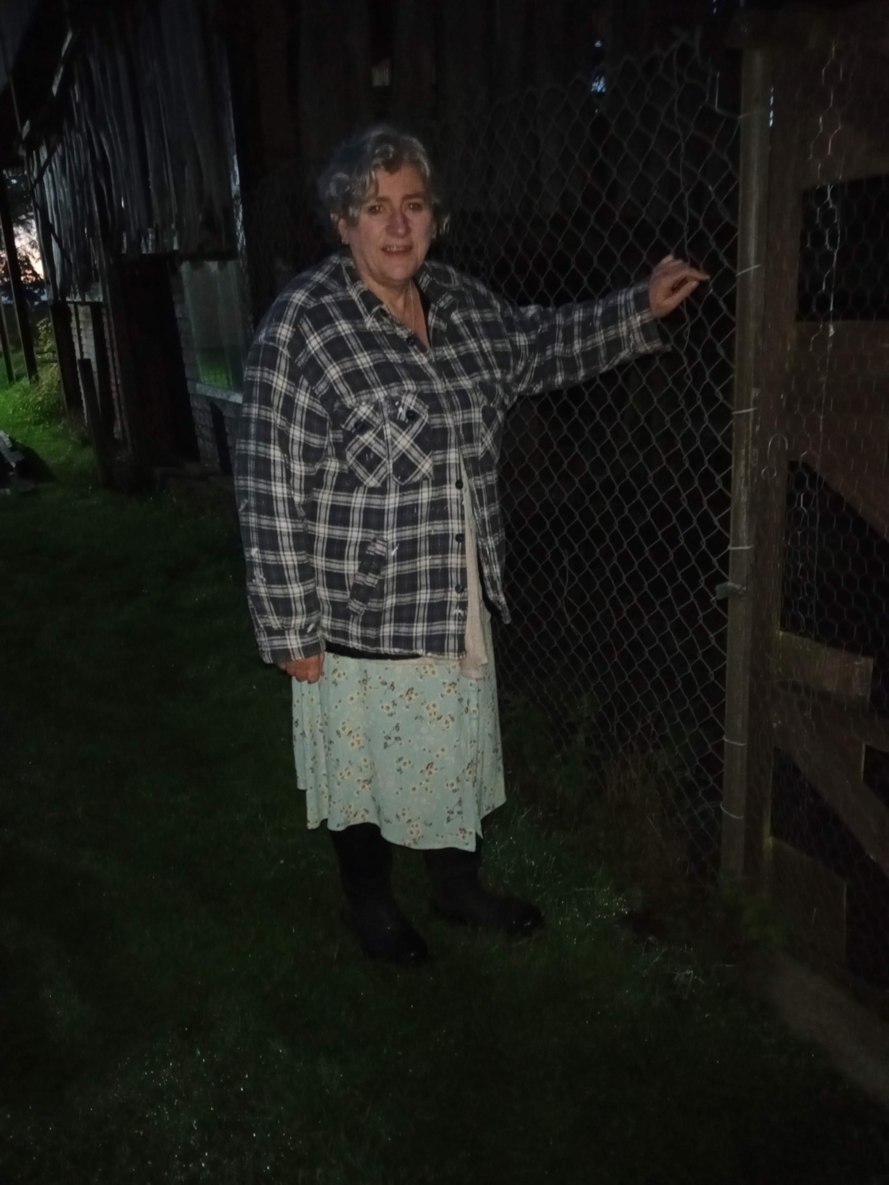Introducing Rocky and Molly (Rhode Rock) and Mac and Babs (Light Sussex). We waited till nightfall (see the picture of me above in full Mrs Tweedie mode) and popped them into the hen house. Well, I say “popped” but it was more like “grab, pull out of cage and place on roost”. Bunty, Ginger and FiFi ruffled their feathers but soon settled down.
