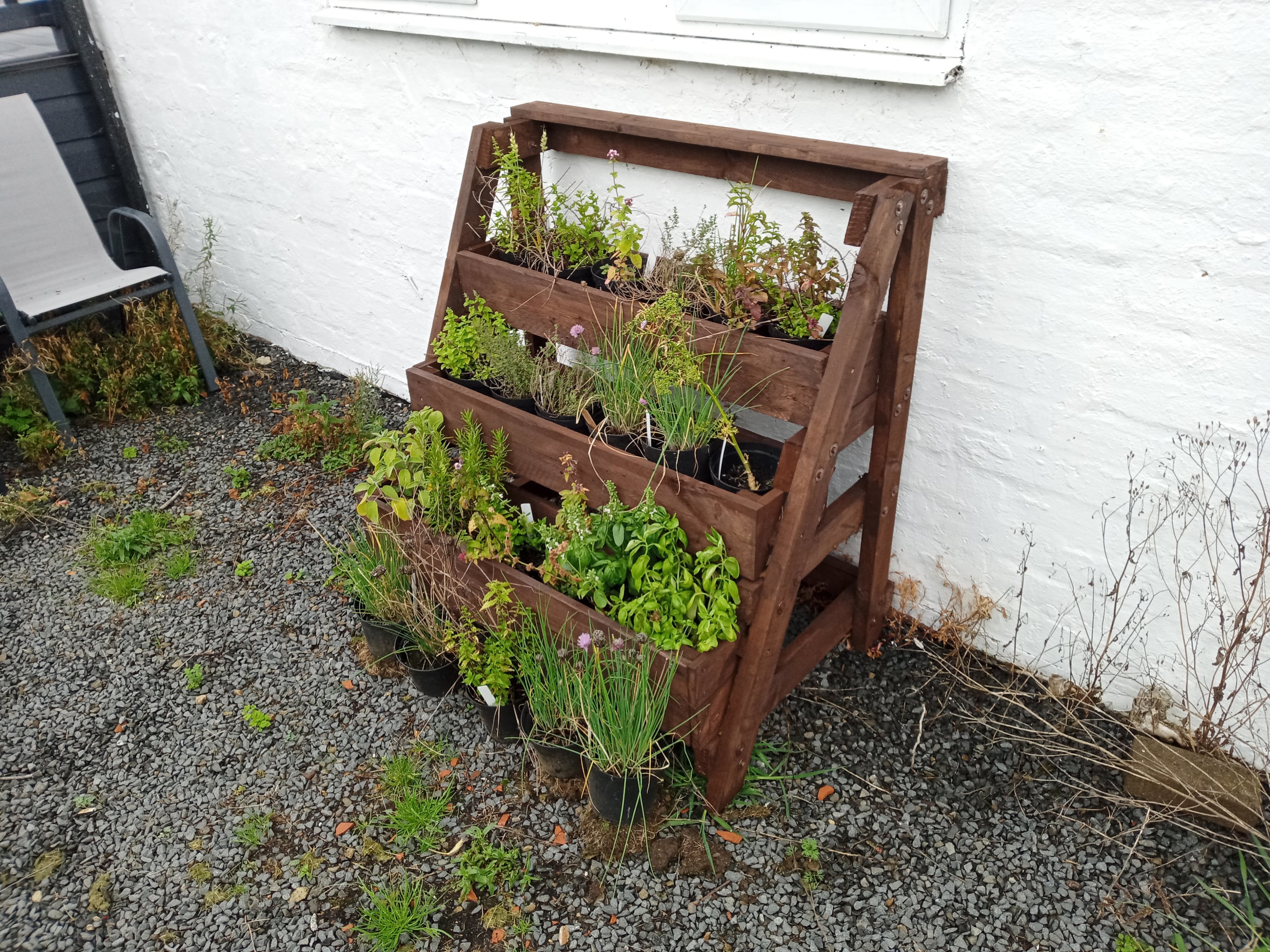 The Smallholder men built me a herb rack over the summer and I finally got it painted. It’s right outside the kitchen door so I can cut fresh herbs for cooking any time I need them.