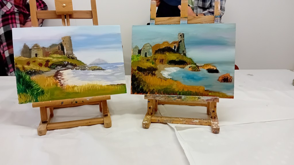 GSH and AiR go to art class so I decided to join them one week. It was fun painting our interpretation of a local castle.