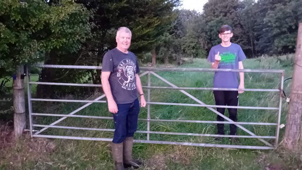 Geordie Smallholder and GSS put up one of the gates in the evening, supervised by the Assassin.